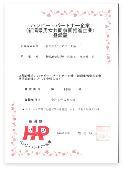 私たちマサミ工業は、より豊かな社会の実現へ向けての課題を設け改善に努めます。